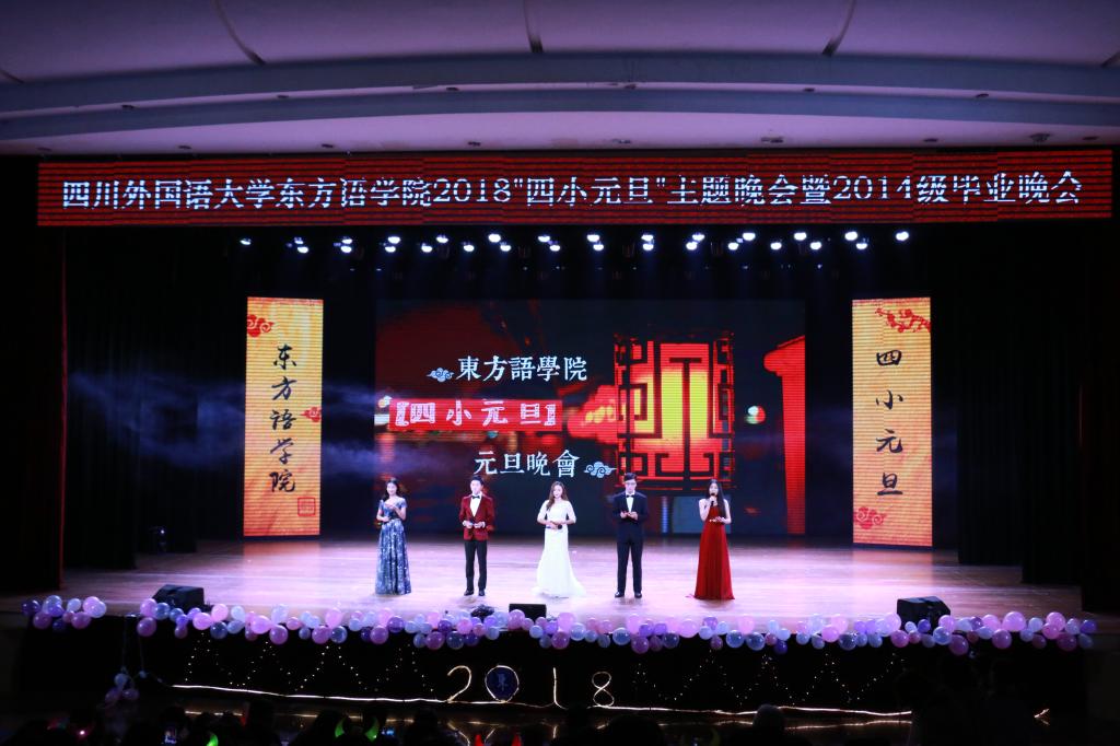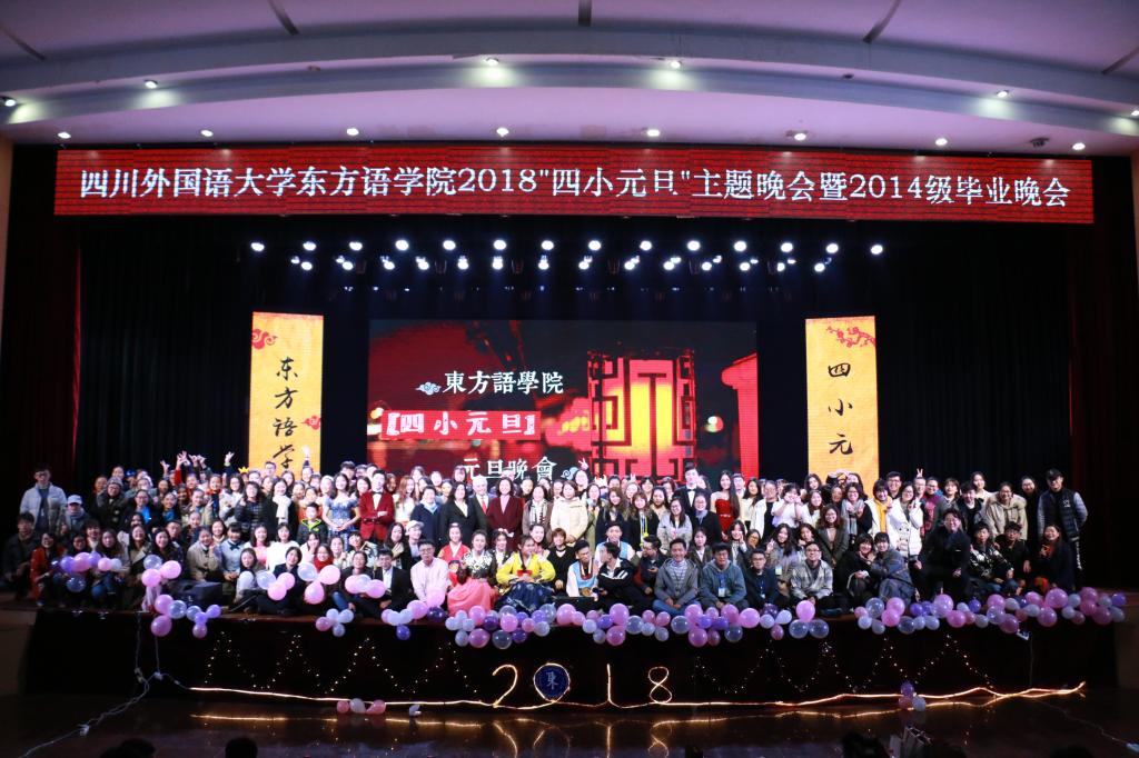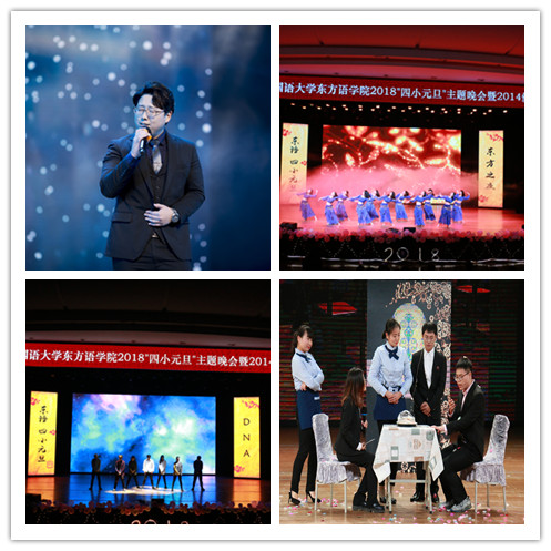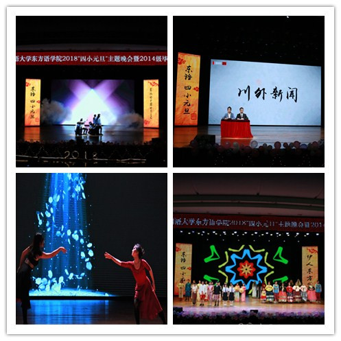 在学院领导,老师的热切关心下,以及全体演职人员的共同努力下,东方语学院2018“四小元旦”晚会暨2014级毕业晚会取得了圆满成功。此次晚会不仅传递了对彼此的新年祝福,更是对2017年东方语学院工作学习成果的肯定与总结,为师生提供展现个人魅力的平台,拉近了师生的距离,丰富了大家的课余生活。