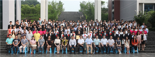 表彰大会在青春激昂团歌声中圆满结束。会后,校领导、参会嘉宾和获奖代表在歌乐广场合影留念。