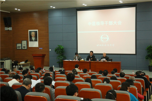 a栋报告厅召开。学校党委书记明国辉,校长李克勇,党委副书记张艳,党委副书记、纪委书记聂志强,副校长王鲁男、乐勇、董洪川、郑白玲以及全体中层领导干部参加会议。会议由明国辉书记主持。