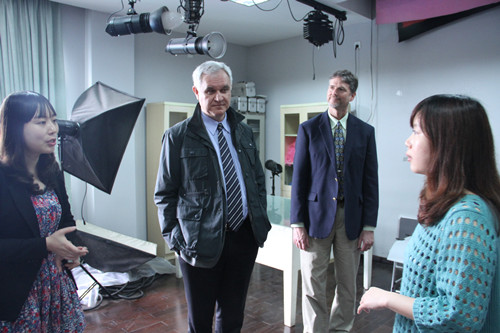 随后,我校国际商学院、新闻传播学院分别与marcello fantoni副校长一行会谈,就双方进一步拓展合作领域,加强教师互访、学生交换,开展暑期项目等内容交换意见,并达成初步共识。会谈后,marcello fantoni副校长一行前往我校传播技能综合实验教学中心参观。