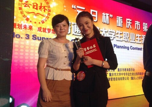 2014年6月18日,重庆市“云日杯”第三届普通高校大学生职业规划大赛在重庆科技学院举行。经过了20强选手的激烈角逐,我校国际商学院2011级学生康紫薇荣获三等奖。