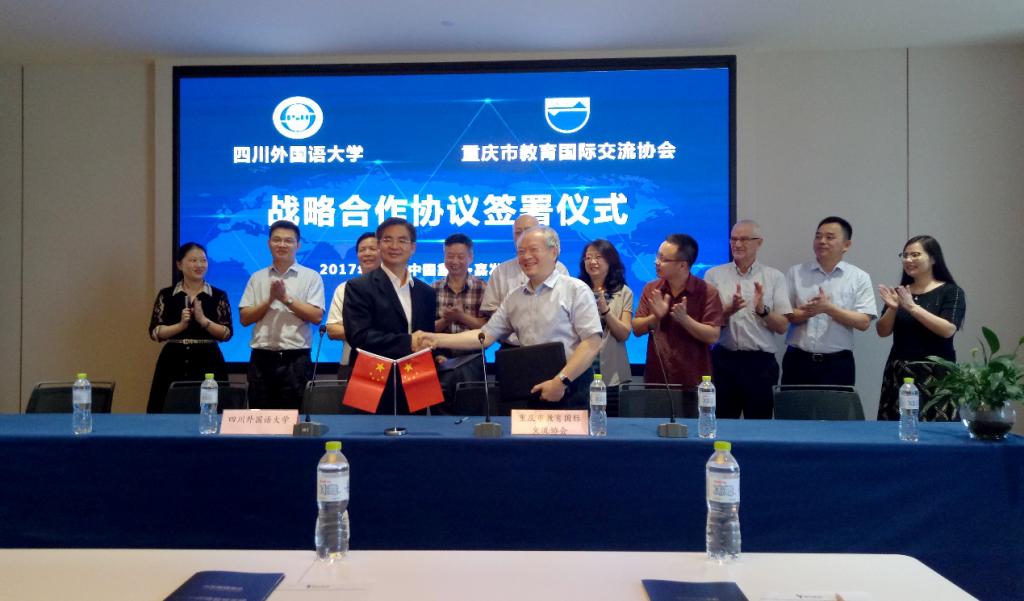 2017年9月12日,李克勇校长代表学校与重庆市教育国际交流协会胡斌会长在重庆嘉发希尔顿酒店会谈并签署战略合作框架协议。