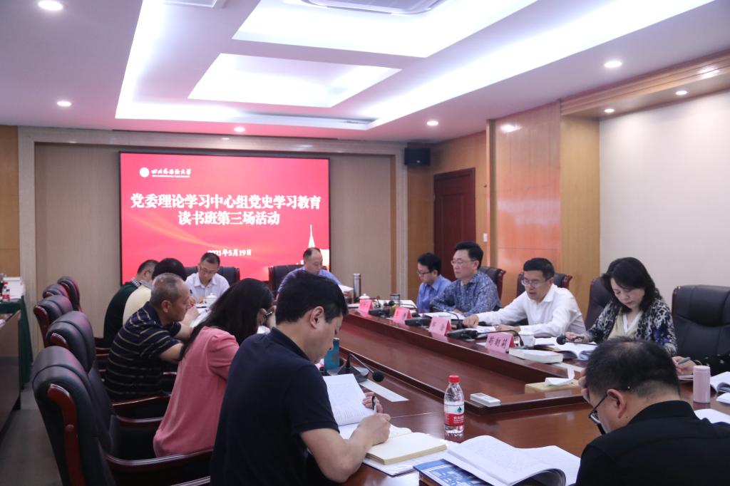 5月19日上午,学校举行党史学习教育专题读书班第三次集中学习暨党委理论学习中心组学习会,专题学习社会主义革命和建设时期历史、《关于建国以来党的若干历史问题的决议》和习近平总书记在庆祝中华人民共和国成立70周年大会上的重要讲话精神。党委委员、纪委委员、各党务部门主要负责人参加活动。党委书记邹渝主持读书班。
