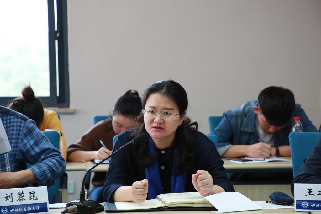 获奖教师代表,东方语学院包淑萍老师发言:“能在此次主题教育活动中取得较好的成绩主要是:一是重视工作、落到实处;二是指导学生,重视质量;三是征文评选,科学有效。我们一改之前由辅导员单枪匹马评选征文,费力又不讨好的方式,成立了专门由高年级学生组成的征文评选小组,对同学提交的文章进行评选。实行匿名评审方式,三轮评选制度,初审淘汰网上抄袭、非原创的文章。第二轮评审从主题内容、题材结构、语言表达等方面进行结构化评分,每篇文章都由两名评审员打分,取平均分。减少因个人喜好或评分标准掌握不一致导致的误差。最后根据得分情况,确定获奖人选。