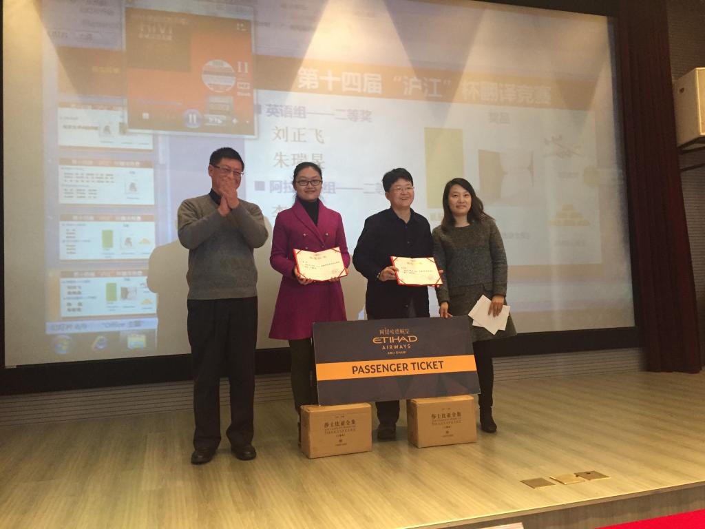 第十四届“沪江”杯翻译竞赛颁奖典礼12月12日在上海师范大学徐汇校区举行,活动由上海市文学艺术界联合会、上海世纪出版股份有限公司主办,上海翻译家协会、上海译文出版社《外国文艺》杂志承办,沪江教育科技(上海)股份有限公司、阿提哈德航空承办,旨在推进中国翻译事业的繁荣发展,发现和培养更多的翻译新人。我校教师吴昊在此次翻译竞赛中荣获阿拉伯语组一等奖,并出席颁奖典礼。