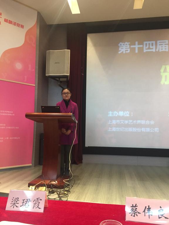 我校教师吴昊在颁奖典礼上做了关于翻译和参赛心得的简短发言,获得了在场领导和专家的一致好评。她谈到译者和原文之间的交往也是一种因缘际会,进行文学翻译需要进行文学研究,翻译的过程也是研究的过程,当把全部身心和情感都融入到作家笔下的世界时,就能更真切和深层次地体会到一般阅读所不能领悟的东西。最后,她表达了自己的愿望:做出好的译文、成为一个好的译者。