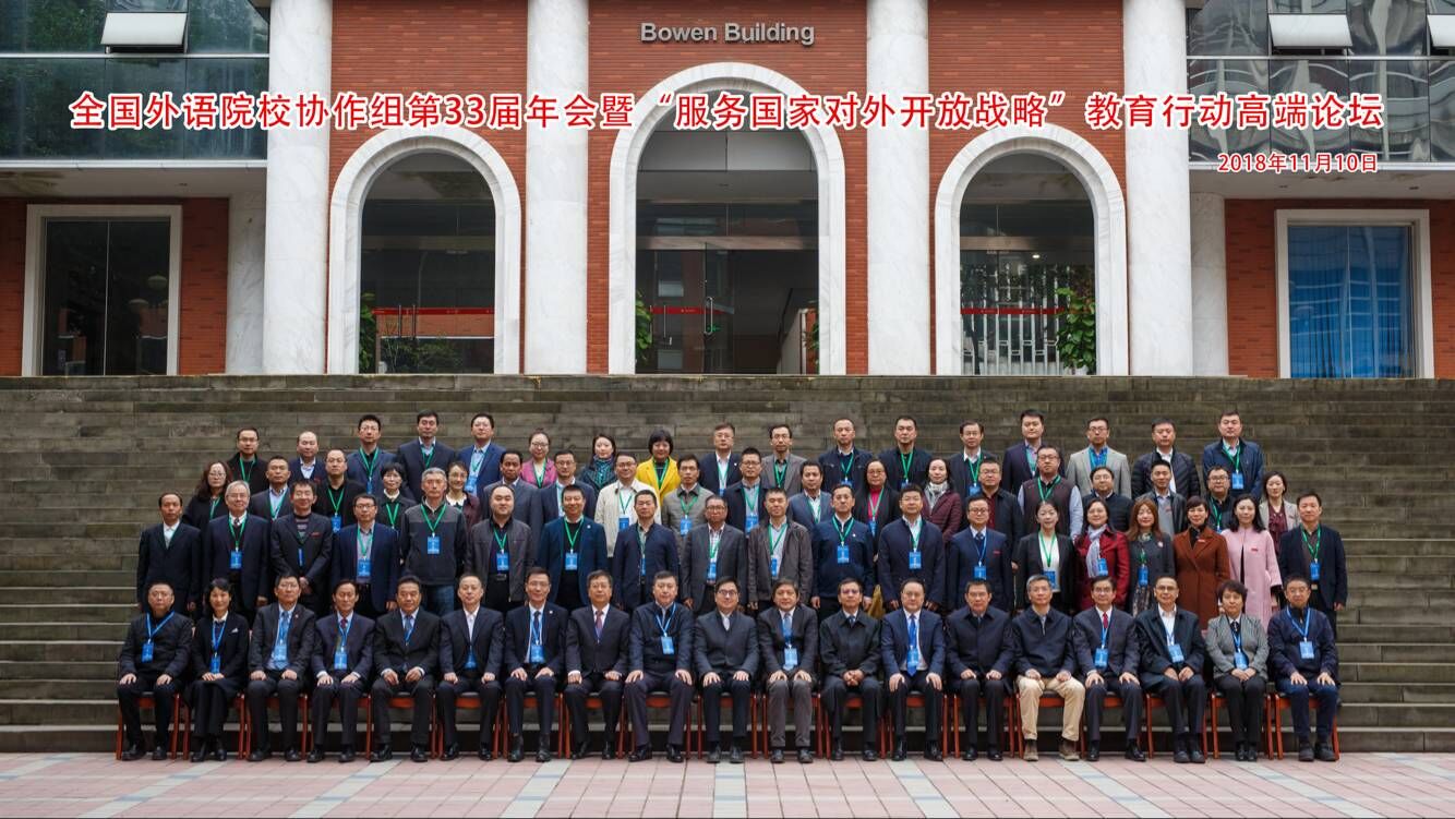在改革开放四十周年到来之际,我国改革开放的大门越开越大的大潮下,党和国家对高等教育的需要、对科学知识和优秀人才的需要更加迫切的形势下,全国外语院校深入贯彻全国教育大会精神、高度重视本科教育、推进“四个回归”的背景下,2018年11月10日,全国外语院校协作组第33届年会暨“服务国家对外开放战略”教育行动高端论坛在四川外国语大学举行。