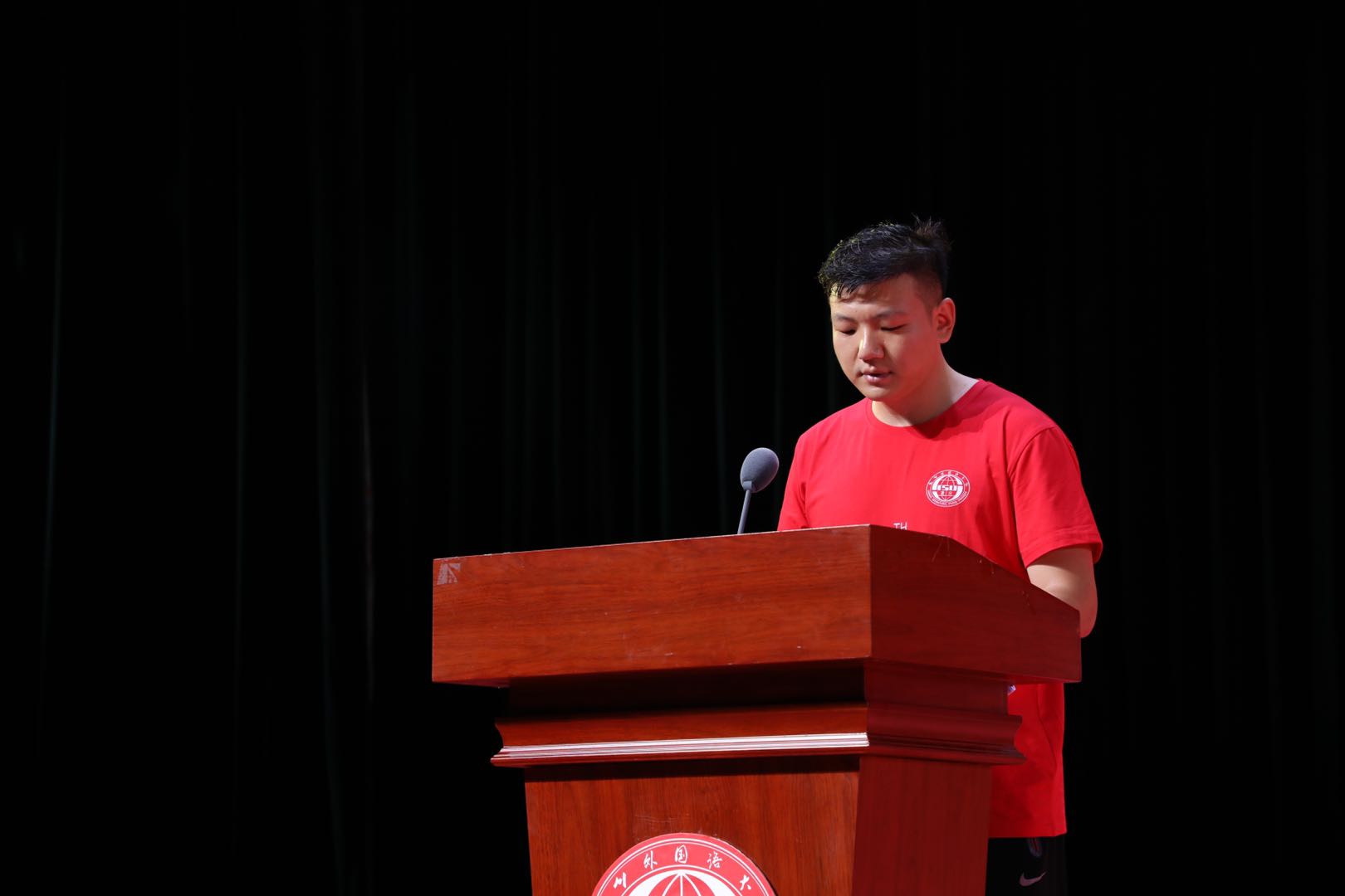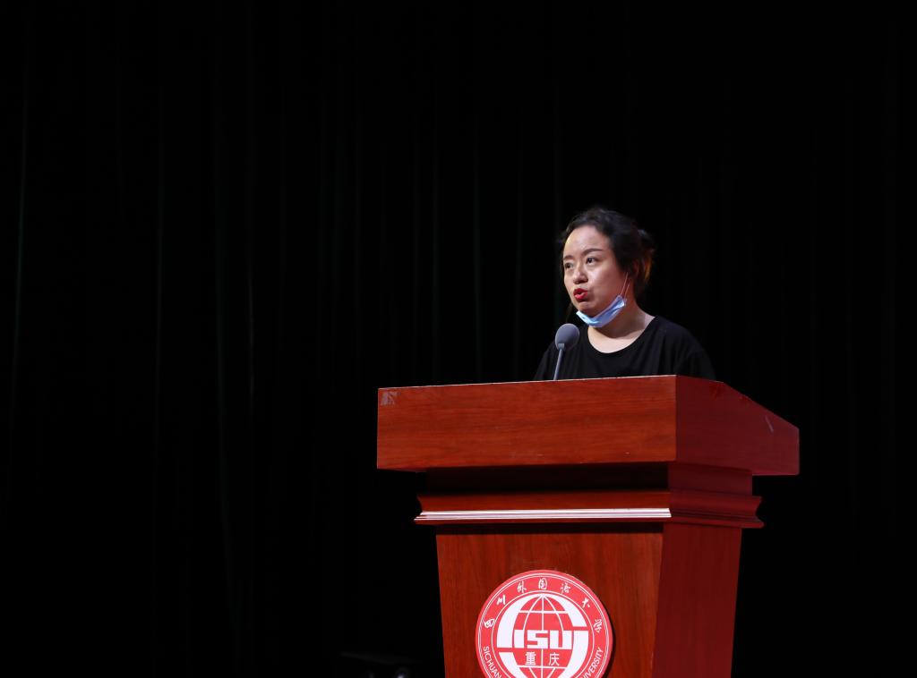 张永晖、孙诗寒作为教师代表,针对校庆晚会节目统筹和暑期集训学生管理两方面进行发言。张永晖表态到,在川外工作的五年时光里,他与川外相互陪伴,共同成长,很荣幸见证了川外在新时代所发生的巨大变化,也很荣幸能够作为节目指导教师参与到川外七十周年校庆活动当中,一定会认真负责,把学生的安全与成长放在首位,严守师德,刻苦训练,为校庆晚会奉献自己的力量;孙诗寒则表示,疫情防控和暑期集训管理工作是本次集训管理的重中之重,作为管理教师的一员,会始终把参训师生的生命安全和身体健康放在首位,做到训前有研、训中有序、训后有管。