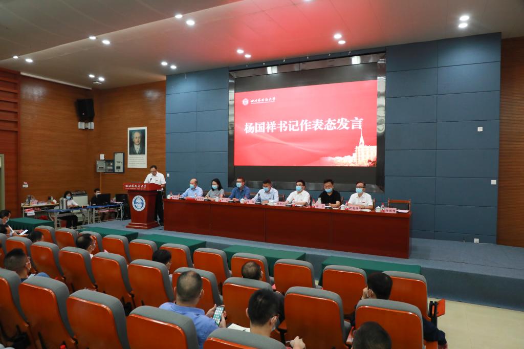 9月2日,在学校新学期干部大会上,党委书记邹渝代表市委组织部宣读杨国祥同志任职的通知。经重庆市委、重庆市纪委监委研究决定,杨国祥同志任四川外国语大学党委常委、纪委书记、重庆市监委驻四川外国语大学监察专员。