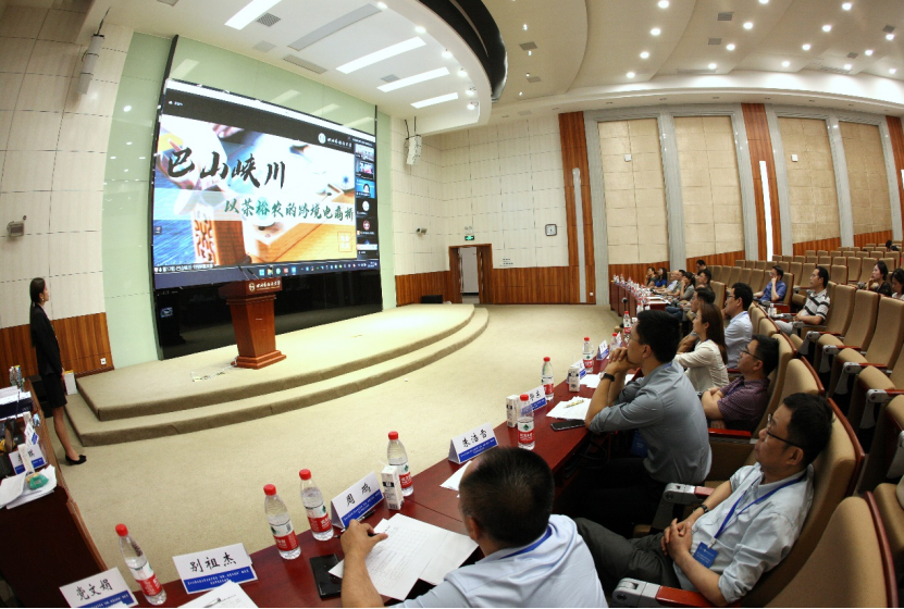 本次重庆省赛区选拔赛分为分组赛和终极赛两个阶段。各分组赛第一名入围终极赛。参赛团队立足电商,聚焦“三农电子商务、物流、互联网金融、移动服务”等方面,构建线上线下结合的专业平台,团队成员围绕参赛作品的可行性、创新性和商业性等创新创业内容进行陈述,评委专家针对各参赛作品进行提问,参赛选手回答。