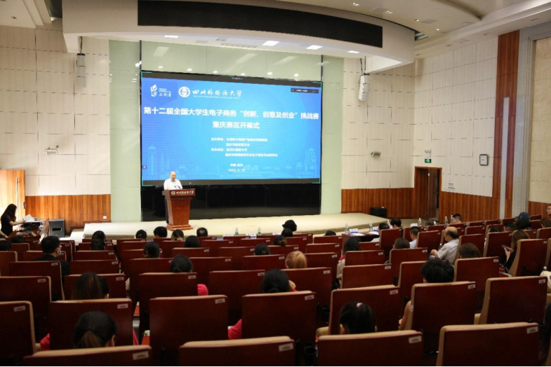 第十二届全国大学生电子商务“创新、创意及创业”挑战赛(以下简称三创赛)重庆赛区选拔赛于2022年6月19日在四川外国语大学举行。由于疫情原因,比赛采取了学生线上汇报答辩,评委线上与线下结合评审,纪检与仲裁线下评审的方式进行。今年三创赛由全国电子商务产教融合创新联盟、重庆市教育委员会主办,四川外国语大学、重庆市高等教育学会电子商务专业委员会承办。共有来自全市25所高校260支队伍1300名学生参赛,其中四川外国语大学共有15支队伍75名学生参加。