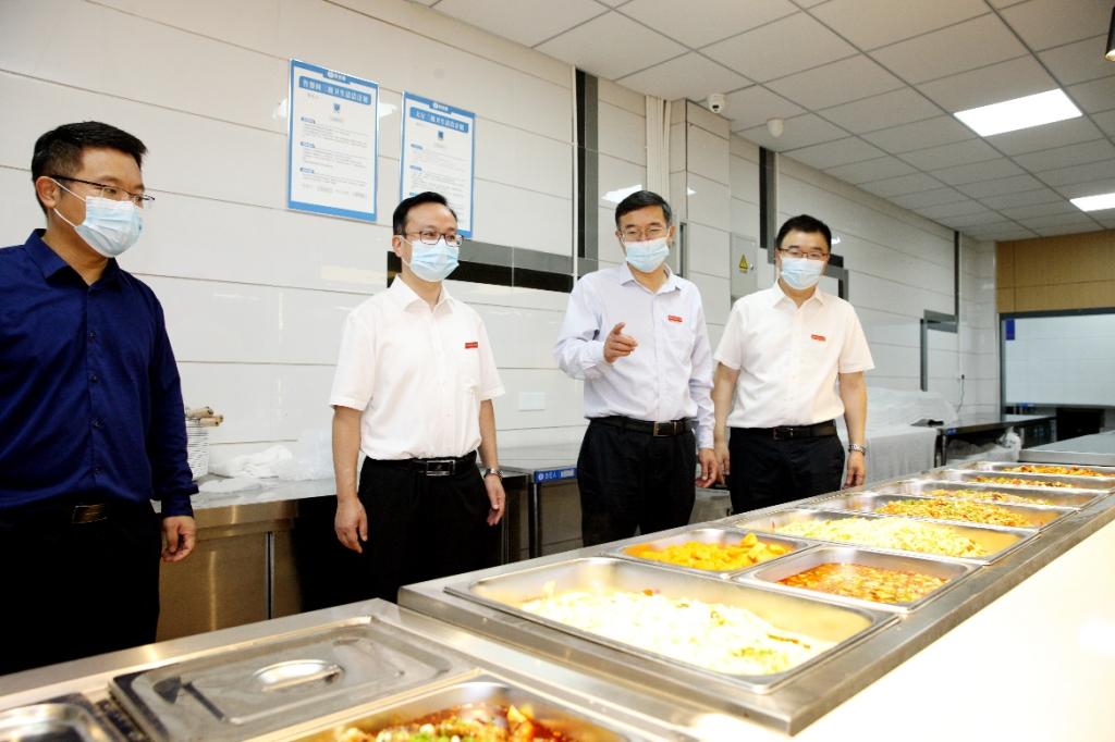 随后,校领导邹渝、董洪川和祝朝伟还带领相关职能部门负责人前往东区食堂,检查节日期间学校餐饮服务工作,要求后勤服务部门做好节假日期间的膳食供应工作,确保食品卫生安全。最后,校领导一行前往文苑社区,为坚守岗位的工作人员送上节日祝福。