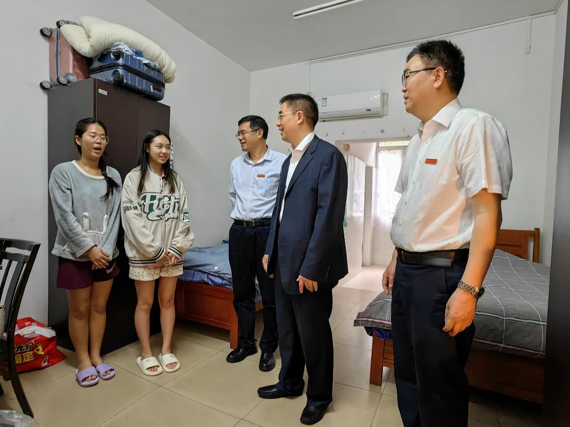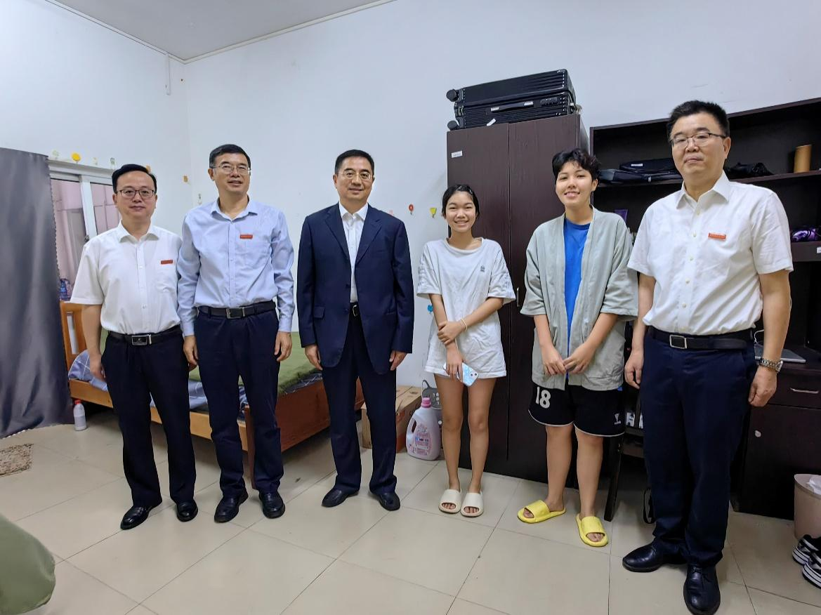 刘宴兵主任一行在我校校领导和职能部门负责人陪同下前往学校留学生公寓,慰问了老挝和泰国学生;随后检查了校园环境,来到保卫处监控中心,了解节日期间学校安全保卫工作情况。所到之处,刘宴兵认真听取了我校校领导和职能部门负责人汇报,对我校的安全管理工作予以充分肯定。他强调,学校要高度重视,进一步做好节假日期间的安全管理工作;要做好隐患排查,营造节日期间平安、和谐的校园环境。