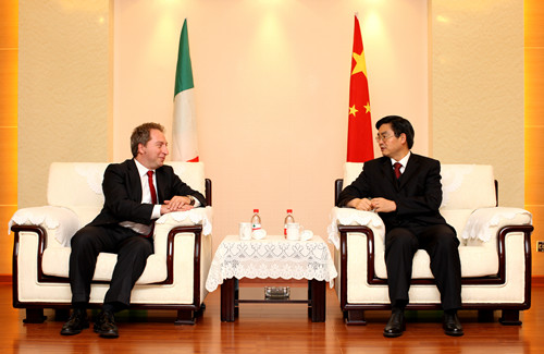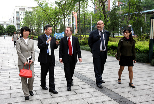 4月23日下午,意大利驻渝总领事馆总领事马非同(sergio maffettone)、随员德拉萨拉(robert della sala)来访我校。我校校长李克勇,副校长乐勇在宏文楼接待室亲切会见来宾。双方就如何更好地促进意大利文化在西南地区的传播、意大利语专业在川外的发展、意大利语教学等方面进行探讨。