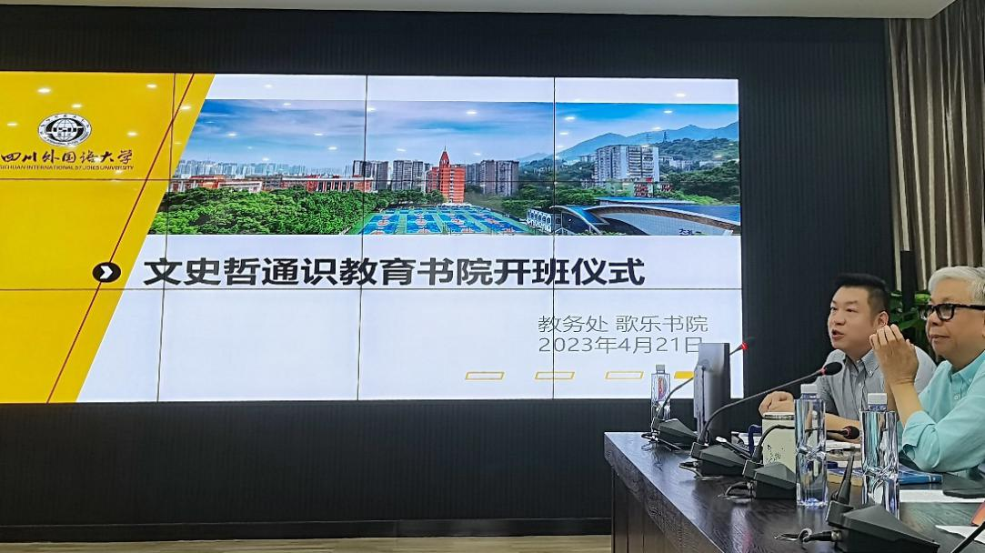 4月21日下午3点半,四川外国语大学文史哲通识教育书院开班仪式顺利举行。教务处副处长张庆教授、外国语文研究中心王寅教授以及书院负责人和同学参加了此次开班仪式,仪式由我校英语学院王天翼教授主持。