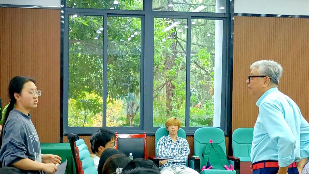 在王天翼教授介绍到场人员之后,张庆教授为同学们介绍了新文科歌乐书院的由来和背景,并对同学们提出了“多听,多看,多思考,多交流”的期望。