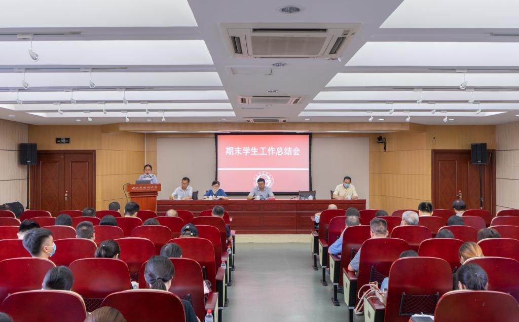 首先,各职能部门相继总结一学期以来的工作。团委书记丁欢重点汇报了团组织建设工作和校园文化活动工作,强调了接下来的工作重点,组织筹划校庆晚会。招就处副处长张雪松介绍了疫情防控下,学校各部门、各院(系)对学生的引导和支持,对三类重点学生的精准帮扶。同时,她提到了就业工作面临的困难,表达了对从事一线就业工作人员的感谢。留学生部张泽民主任在全方位总结了留学生教育管理的举措和成效,期待进一步加深中国学生和留学生之间的交流学习。学生处处长吴维均总结疫情防控下的学生工作,强调聚焦学生生命健康、心理健康和学业发展,多措并举,及时掌握疫情、及时发声指导、及时采取行动。他谈到学校做好思想引领,教育学生做好疫情防控。做好排查预防,扎实开展学生疫情摸排监测。做好科学防控,迅速开通心理辅导热线服务。做好精准资助,迅速启动专项资助计划。同时,介绍了辅导员招聘和岗位绩效的推进。