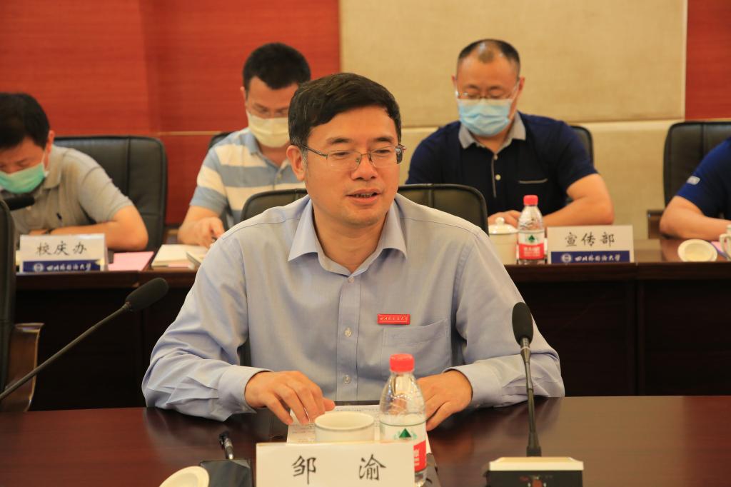 邹渝表示,高等教育新一轮的发展机遇已经呈现,学校在国家“一带一路”建设和重庆市建设内陆开放高地的战略布局中面临重大发展机遇,成渝双城经济圈、中国西部重庆科学城建设更是重要的机遇。川外作为重庆8所高校之一入选“成渝地区双城经济圈高校联盟”,给学校的发展增添了动力。对此,学校领导班子深感“责任大、压力大”,但是“希望也大”。我们有信心抓住这个机遇期有所作为,以更宽的视野、更高的站位,认真做好“十四五”发展规划,通过70周年校庆凝聚全体川外人的智慧和力量,推动高水平应用研究型外国语大学建设。