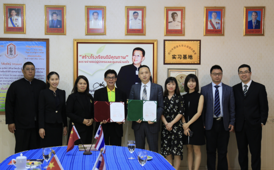 12月26日,代表团一行批理亚莱中学及蒙凯中学。在批理亚莱中学,代表团得到了帕府批理亚莱中学Lerdchai校长及其管理团队热情接待,双方回顾了近年来的友好合作与人员往来,并期待明年4月批理亚莱中学的师生到我校进行夏令营活动交流。留学生部钟南征老师还就批理亚莱师生所关心的留学奖学金等事宜进行了政策讲解及答疑。在蒙凯中学,代表团一行与蒙凯中学校长SuriyonSaisanongyos进行了亲切会谈,会上签订了合作框架协议,并就我校派出实习生事宜进行了深入交流。会后,代表团参观了蒙凯中学汉语教室、汉语实习教师宿舍等。