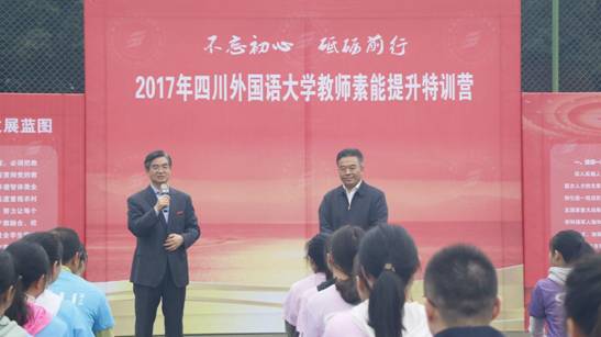 校领导亲临活动现场,风趣幽默地为大家打气,亲切和蔼地鼓励并嘱咐大家:扎根美丽川外,不忘初心,砥砺前行。