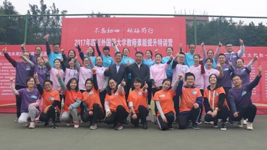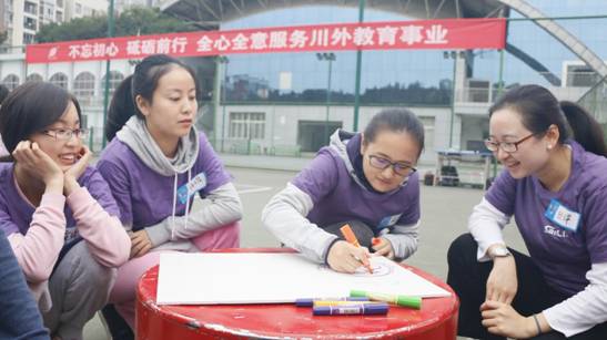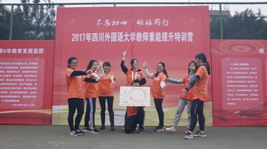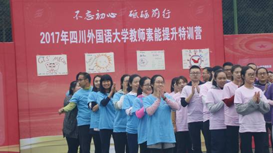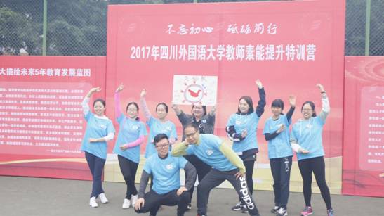 50余名教师分组成对,各队尽显团队风采——Sunshine队、A-Team队、川外小粉豹队、九仙队。大家一起欢唱欢舞,各显其独特气质。