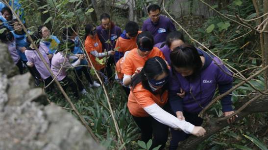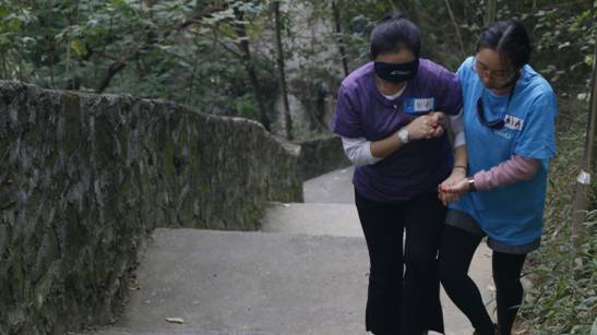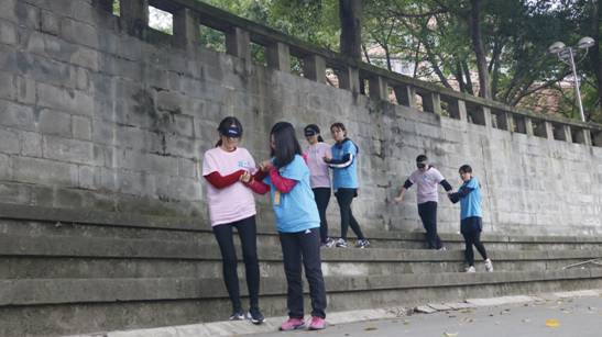 在最后一个“漫步人生路”训练中,各位老师两两随机成对,扮演盲人和哑人,在模拟困境中相互搀扶行进。为新老师们彼此面向未来的信任、合作与情谊,奠定了坚实的情感基础。