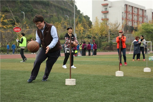 11月27日下午天朗气清、阳光明媚,我校教职工秋季健身活动如期进行。一年一度秋季健身活动是我校传统项目之一,也是展现各部门工会会员集体风采的平台,深受教职员工欢迎。本次健身活动包括篮球运球绕障碍接力、足球射门、定点掷实心球、滚铁环、取水接力等集体项目,重在趣味性、娱乐性和参与性,充分体现了团队协作的精神和积极向上的风貌。
