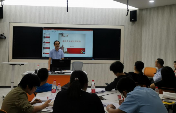 本次院庆系列活动还包括“翻译专业建设研讨会”,会议集中讨论了翻译专业本科人才培养方案的修订和专业课程改革等相关内容。在人才培养方案的研讨中,主持人杨志亭指出,在新文科建设背景下,学校大力推行通识课教育,要给学生更多选课空间,而专业课程要在保证教学质量的前提下,既要适应新文科建设的总体布局,又要凸显翻译专业的特色。针对2021版翻译专业人才培养方案的修订,杨志亭给老师们分析了部分课程调整的原因,提出了今后课程改革的一些设想和思路。