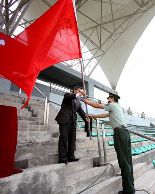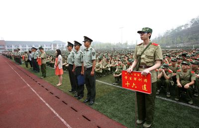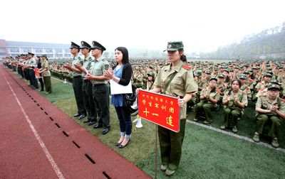 随后,李克勇校长授“四川外国语大学学生军训团”团旗,军训团团长王志彪同志接旗。这也标志着2013级本科新生军训正式拉开序幕。