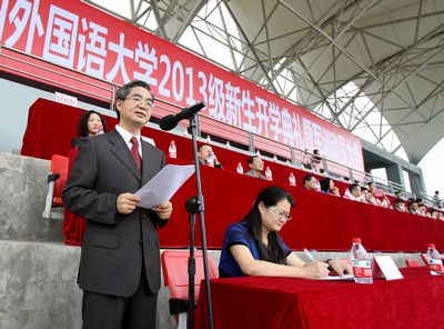 接着,李克勇校长讲话。他首先代表党委、行政向来自全国各地的新同学们表示热烈的欢迎和衷心的祝贺。随后,他简要介绍了川外的发展历程以及近年来所取得的成绩,希望同学们在未来的学习生活中将川外精神发扬光大。最后,李克勇校长对同学们提出几点希望,一是希望同学们能学会思考,做一个胸怀祖国、放眼世界、关心国家命运的人,做一个有抱负、有追求的人;二是希望同学们在大学期间不仅要掌握专业知识和理论基础,更要加强道德修养,端正品行、磨练意志;三是希望同学们在探索未知和创新实践中获得乐趣、获取知识,不断扩大学习领域,开阔视野,努力使自己成为国家发展、社会进步所需要的复合型创新人才。