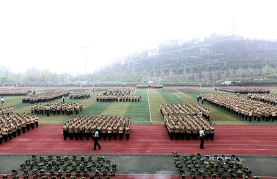 来自77133部队的副政委孙志章同志随后发言。他首先代表77133部队的全部官兵向我校教职员工表示崇高的敬意并向全体新生表示欢迎和祝贺。他说,川外是一个有着军大历史和传统的外语类院校,而77133部队是一支传承亮剑精神的英雄部队,与川外的合作是一次共同学习交流的机会,有利于双方增进了解,增进团结,双拥之花,尽情绽放。同时,他希望同学们可以珍惜学习机会,走好军训这大学第一步,为军训圆满成功做出贡献。