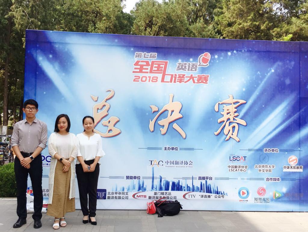 我校两名选手在黄钰洁老师带领下一同前往北京参加大赛总决赛。最终,2015级翻译专业本科生蔡国华获得交传比赛三等奖,2017级翻译专业硕士研究生高翔获得同传邀请赛二等奖,续写了我校学子在全国口译大赛中的好成绩,这既离不开指导教师黄钰洁的悉心指导和高翻队8位教师的辛勤付出,以及翻译学院在高层次口译人才成长方面所做出的卓有成效的工作,更离不开教务处和学校领导对翻译人才培养的重视。翻译学院先后通过加强课堂教学质量管理、加强实习基地建设、加强翻译服务能力建设、成立高翻队、加强第二课堂实践活动等方式,努力提升课堂教学质量,培养高层次复合型的翻译专业人才。