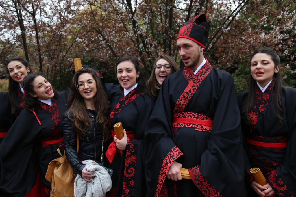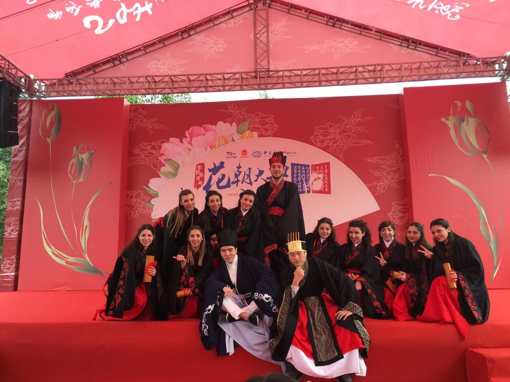 陈天蓝(Carlamiranti)和苏山玫(Giorgiamusumeci)表示,“我们非常喜爱庄重的汉服和高雅的传统礼仪,穿着美丽的汉服行礼,就像在跳一段优美的舞蹈。”在采访中她们还朗诵了白居易的《钱塘湖春行》,以表达参与花朝节的喜悦,以及对中华古诗词、中华传统文化的热爱。