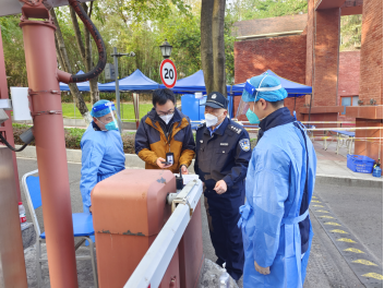 于默默无闻处,干惊天动地事。在做好本职工作之外,保卫处全体同志,不求名利,不求功绩,只为坚守那份誓言,坚决打赢这场突如其来的“战役”。与相关部门通力配合,积极落实学校各项防控措施,不断强化校区内安全巡查,每天不间断巡逻广播、解释、劝阻,避免居民外出走动聚集。积极协助校医院开展上门核酸检测,每日选派保卫骨干在校内核酸检测点完成安全保障,维持现场秩序,并提醒引导参检人员落实疫情防控要求。帮助传运保供物资,严格进行消杀并归类整理。充分发挥校园技防天网优势,协助完成校园流调排查,尽全力巩固校园战疫阵地。