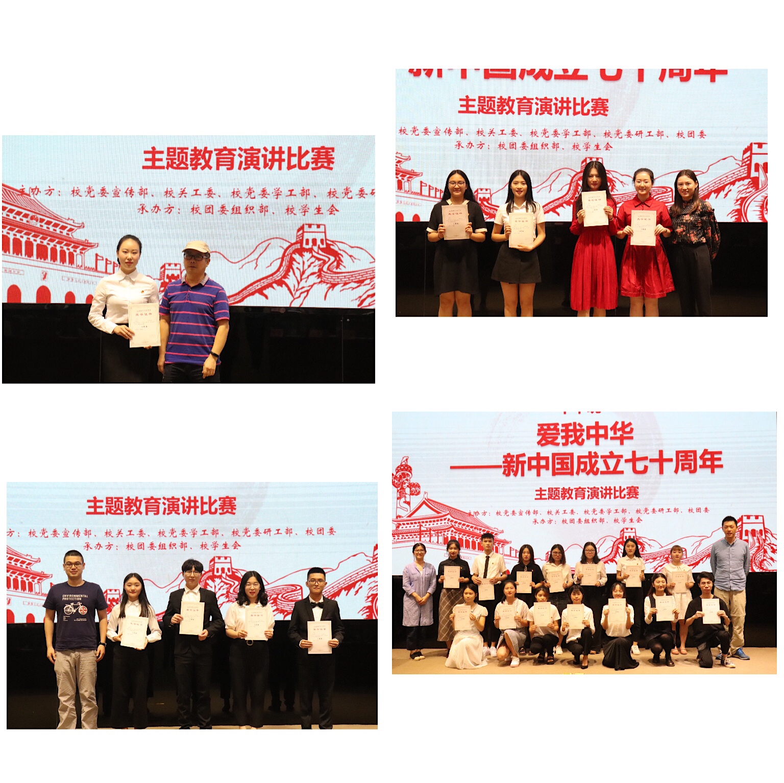 最终,本次比赛共评出一等奖1名、二等奖4名、三等奖4名以及优胜奖14名。根据学校2019年“中华魂”(爱我中华—新中国成立七十周年)主题教育读书活动暨征文、演讲比赛的具体安排,经评委合议,将推荐两位同学参加下一阶段演讲比赛。