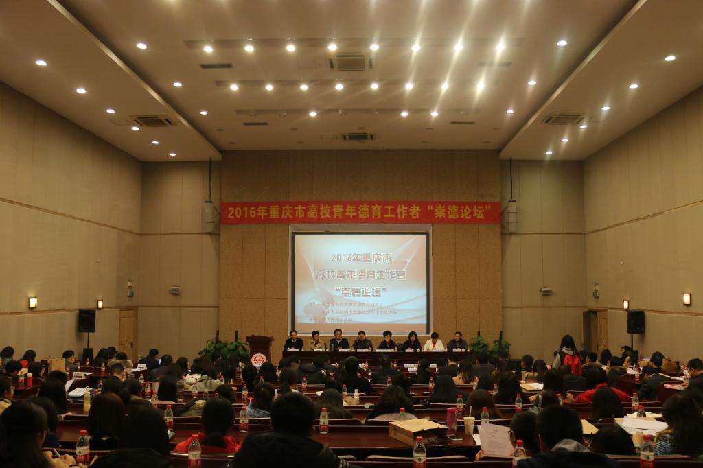 12月11日上午,在全国高校深入学习贯彻党的十八届六中全会精神和全国高校思想政治工作会议精神之际,由重庆市高校思想政治教育研究会和重庆市高校师生思想政治工作研究咨政中心联合主办,四川外国语大学承办的第二届重庆市高校青年德育工作者“崇德论坛”在我校隆重举行。