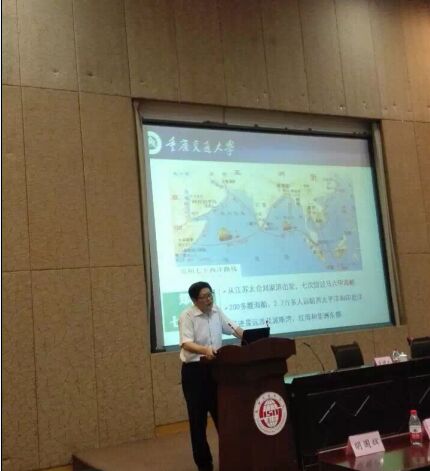 我校党委书记明国辉在学术报告会上致辞。他指出,“一带一路”倡议为进一步推进我国高等教育国际化,深化高等教育领域综合改革,提高高等教育质量提供了重要的战略发展机遇。明国辉讲到,近年来,我校以与重庆市外经贸委共同组建的重庆国际战略研究院为牵引,从人才培养、学术研究、社会服务、人文交流等方面全方位、多层次地深度对接“一带一路”倡议。明国辉表示,重庆国际战略研究院还将进一步整合校内多种语言资源,共同开展“一带一路”沿线国家国别研究,进一步扩大对外合作与交流。明国辉提议以“一带一路”倡议为契机,积极开展校际、校企之间的合作与交流,共同为重庆地方经济和社会发展服务。