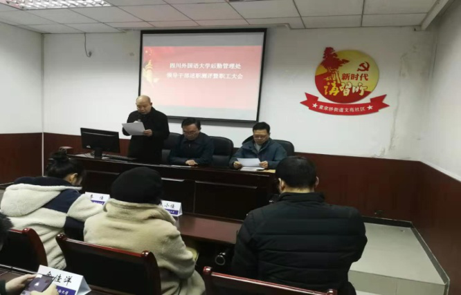 2020年1月6日上午,后勤管理处在学校文苑社区会议室召开“2019年后勤管理处领导干部述职测评暨职工大会”。分管领导李彦副校长莅临指导,研究生院党总支淡修安书记全程督导,全体后勤管理处员工参会。
