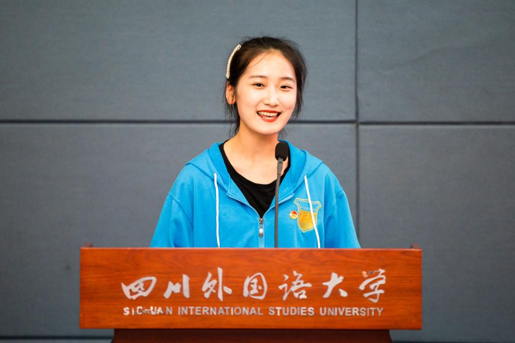 重庆市大学生艺术展演优秀个人获得者肖惠文作为受表彰代表发言。她分享了在校期间担任学生干部的经历和收获,表示身为新时代青年,应该不辜负党的嘱托和人民期望,在中华民族伟大复兴中国梦的新时代长征路上奋勇当先。
