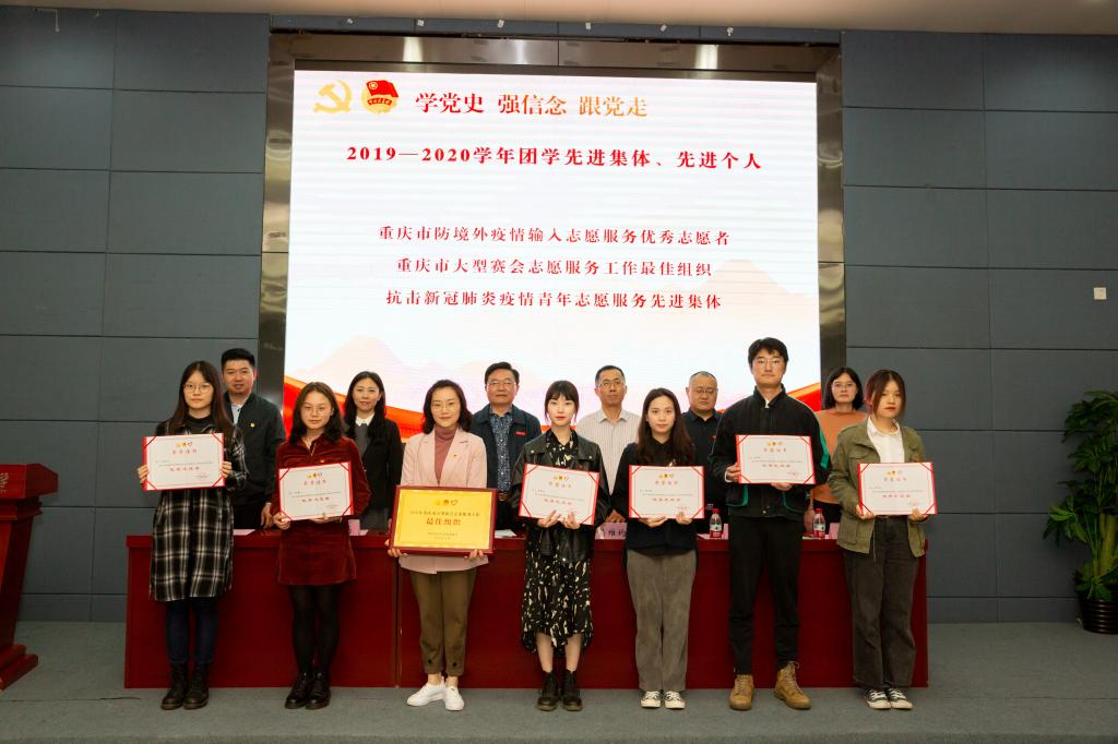 大会表彰了2019—2020学年优秀共青团员、优秀共青团干部、优秀学生干部、五四红旗团总支(团支部)、红岩十佳青年以及2020年度在疫情防控、学术科技、文化传承、志愿服务等方面涌现出的先进集体和个人。