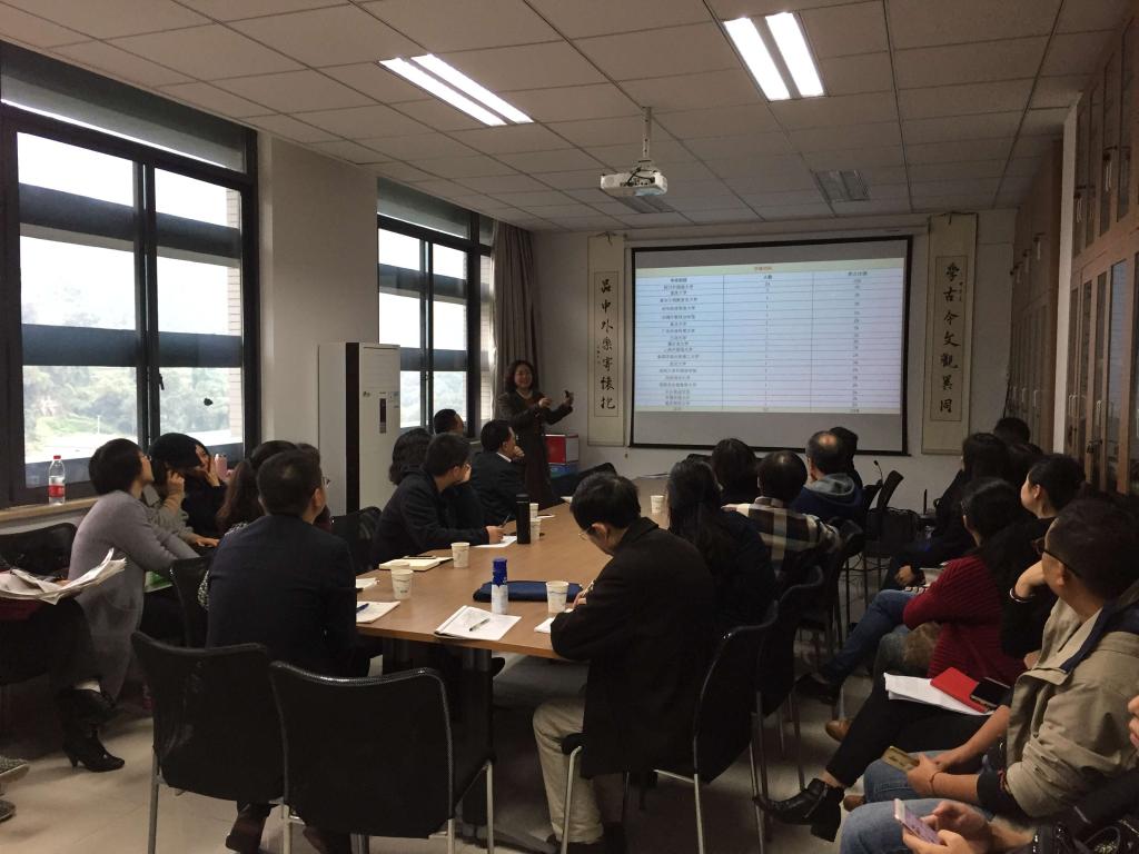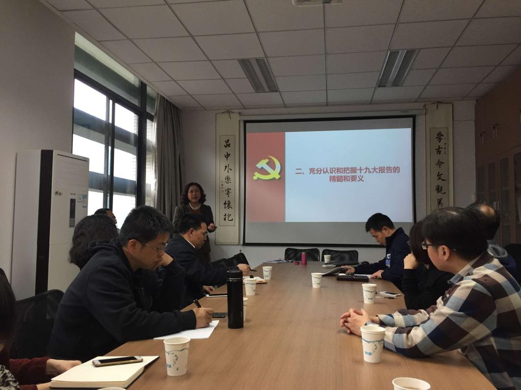 2017年11月17日下午,在西区办公楼B602,四川外国语大学十九大精神宣讲队成员郑白玲副校长为商务英语学院、德语系教工支部作了主题为《不忘初心 牢记使命》的十九大精神宣讲。