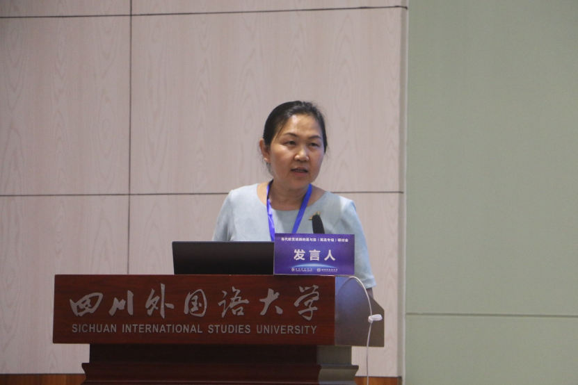 西南交通大学的李成坚教授发言主题为《论爱尔兰剧作家马克·奥罗戏剧中的中国意象》。她对马克·奥罗及其作品的主题特色、语言风格、艺术创新和中国元素运用作了简要介绍,继而以《新秀豪伊》和《中国制造》为例,分析了其中中国意象的作用。同时,她还谈到马克·奥罗作品中的“暴力美学”。最后她总结到:“以跨文化视角审视外国文学当中的中国形象,在中外人文交流和文明互鉴的现实当下,具有积极的反思价值”。