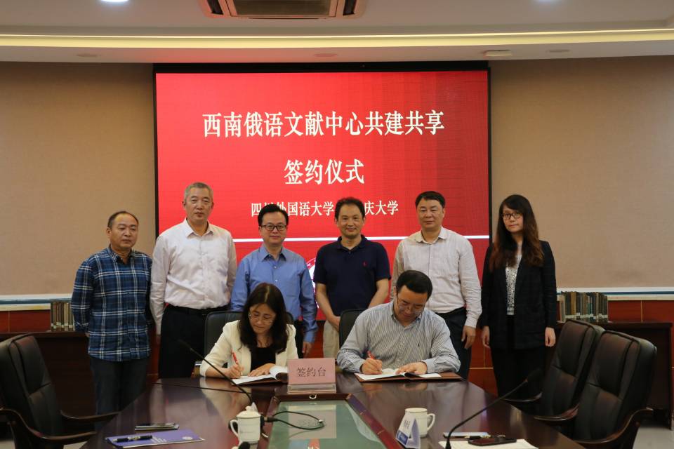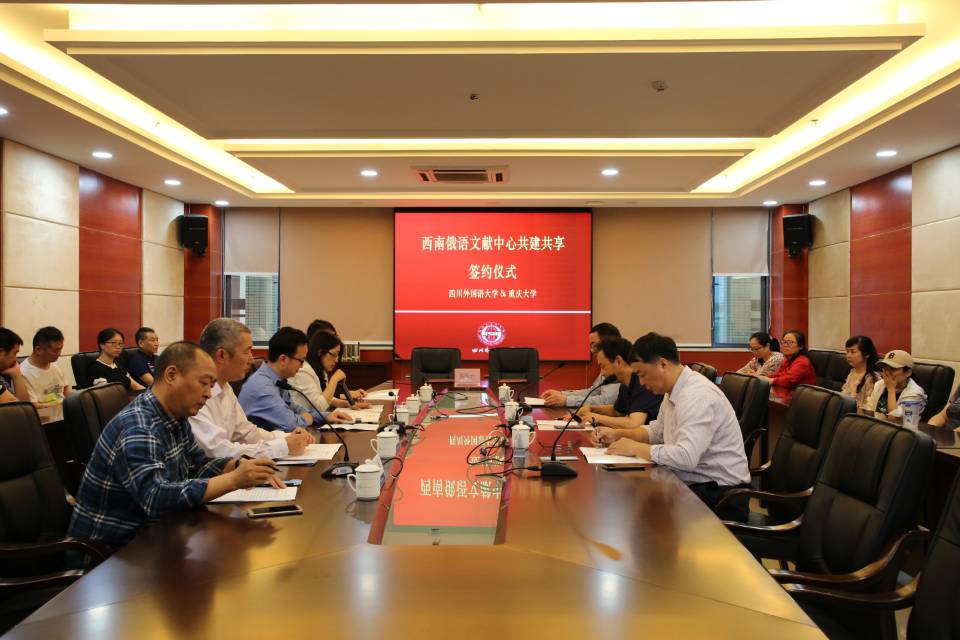 2019年6月18日,我校图书馆与重庆大学图书馆西南俄语文献中心共建共享签约仪式在我校图书馆505会议室隆重举行。我校副校长祝朝伟、重庆市图书指导委员会秘书长彭晓东、重庆大学图书馆馆长杨新涯、重庆大学副馆长唐孝云、我校图书馆馆长何燕、我校图书馆党总支书记郭晓春、俄语系党总支书记杨俊、俄语系副主任邵楠希以及我校图书馆部分馆员出席了签约仪式。仪式由我校图书馆馆长何燕主持。