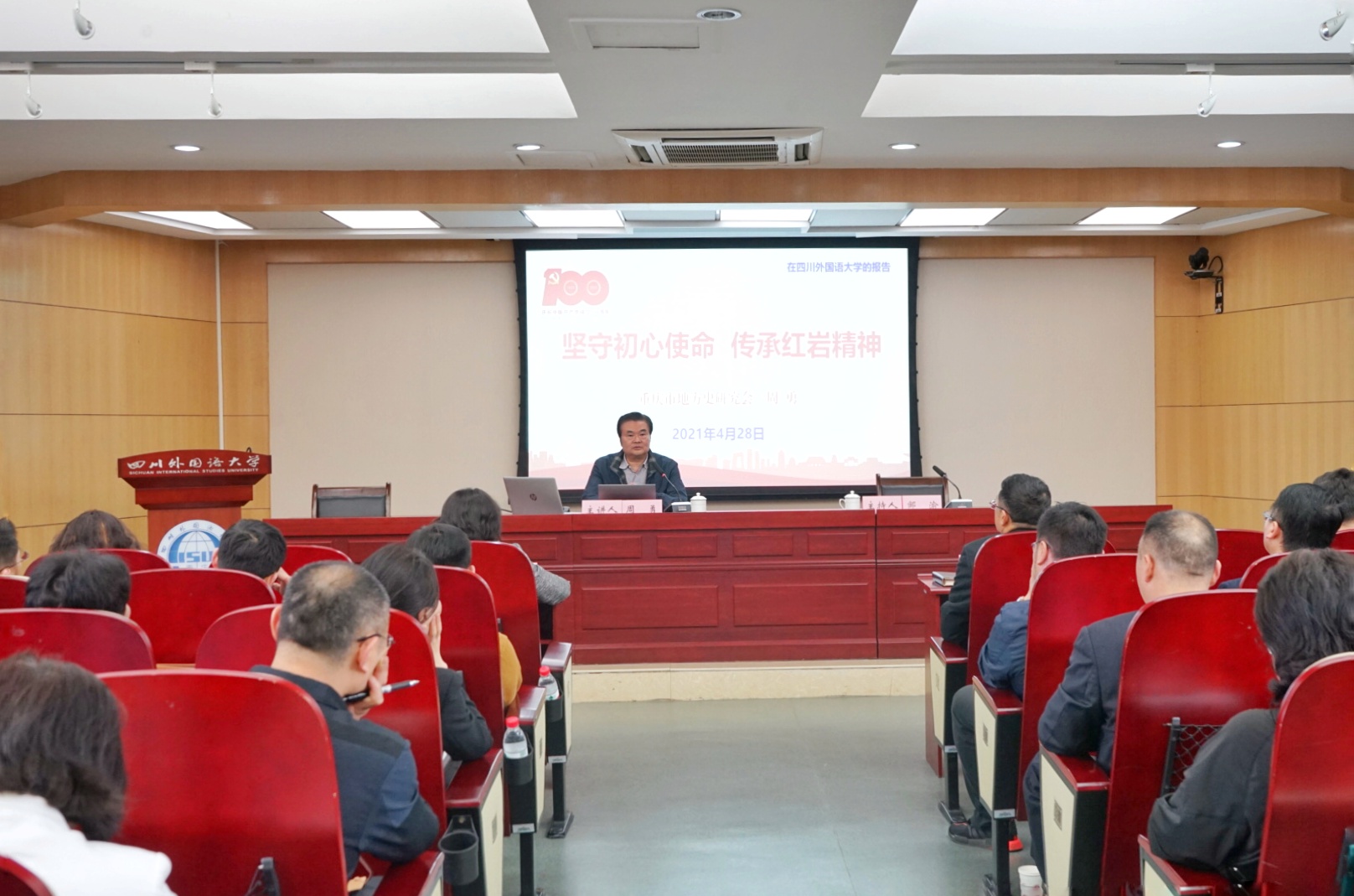 4月28日下午,学校举行党史学习教育专题读书班第二次集中学习暨党委理论学习中心组(扩大)学习会,深入学习习近平总书记关于重庆历史文化特别是红岩精神的重要论述。中国抗日战争史学会副会长、中国抗战大后方研究协同创新中心主任、重庆市地方史研究会会长周勇应邀为我校师生作“坚守初心使命,传承红岩精神”辅导报告。我校全体校领导、党员中层领导干部、马克思主义学院师生代表参加学习。党委书记邹渝主持会议。