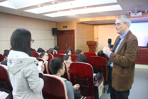 会谈结束后,gary slater副校长和陈庆华教授分别于11月24日晚上和11月25日上午面向我校法语及英语语种学生举行了国际项目推介会,项目涉及本科、硕士、博士3个层次,专业涵盖翻译、商科、传媒、经济学、文学等社科人文类专业。会上,学生反映热烈,gary slater副校长与陈庆华教授与学生们亲切交流并耐心细致解答同学们的问题。