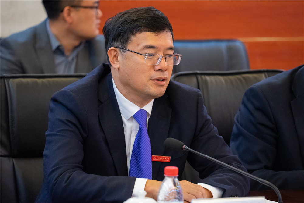 邹渝致欢迎辞,对海南大学武书记一行的到来表示热烈欢迎。他指出,川外一部两院的培训在海南大学做得很扎实,得到了海南大学领导及师生的认可。邹渝表示,川外会进一步加强与海南大学的合作,在外语外贸人才培养方面更好地发挥作用、体现价值。他简要介绍了川外学科建设、人才培养的现状以及学校的发展目标。川外要在传承军校传统、红色基因的基础上,积极拓展应用型研究,努力建设特色鲜明的高水平应用研究型外国语大学。邹渝坚信,战略合作协议的签订必将对两所学校未来的发展起到重要的支撑作用,有利于充分发挥双方作为高等院校服务地方经济与社会发展、人才培养、国际交流以及文化传承的作用,更好地实现高校的使命与职责。