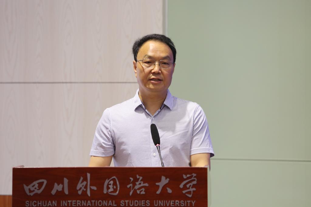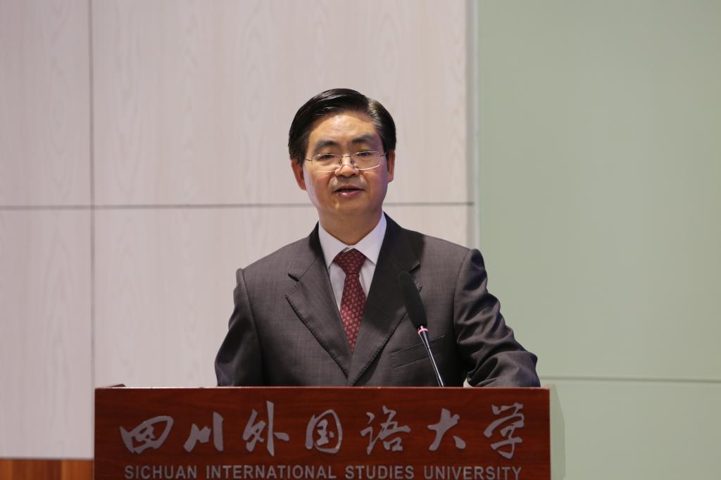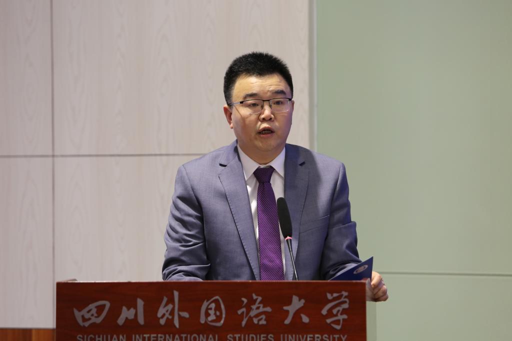 副校长董洪川宣读《四川外国语大学关于成立语言智能学院的决定》。