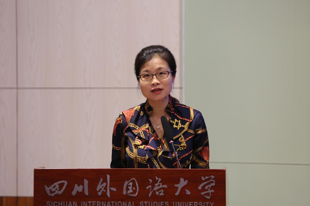杨帆致辞。她指出,国家加速推动人工智能发展,重庆市也致力于促进大数据智能化建设,打造全国一流大数据智能化应用生态城市。她强调,川外成立语言智能学院,既能够为重庆大数据智能化发展提供有力的人才支持,又能够助力重庆市“智慧教育”和“智慧城市”建设。她表示将大力支持川外语言智能学院的建设和发展。