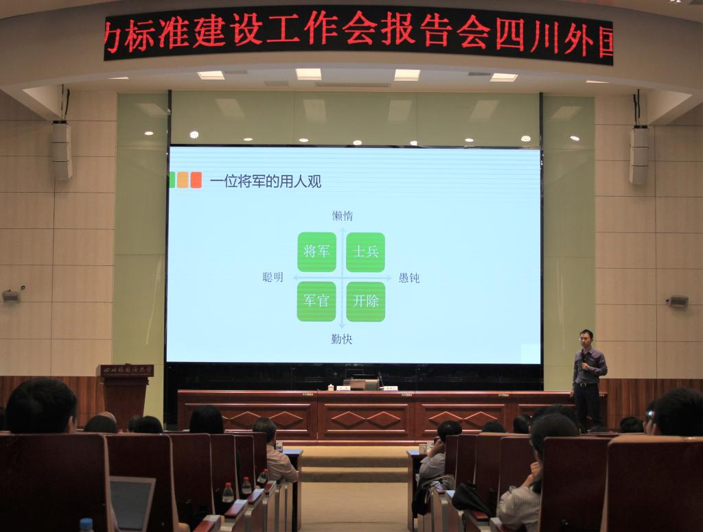 成立仪式后,举行了主题报告会,由董洪川主持。