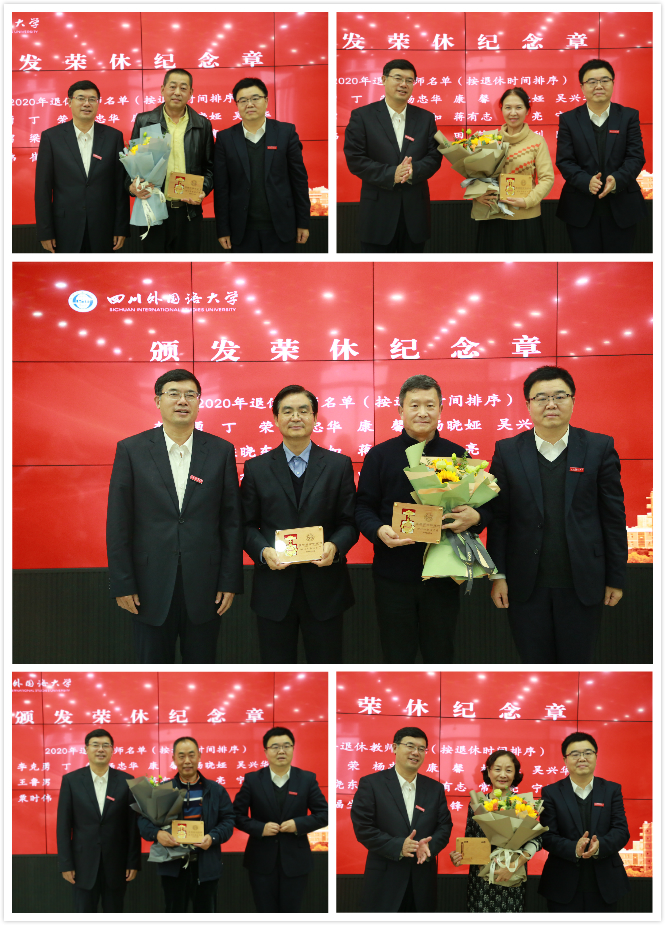 开班仪式还安排了一个特殊而隆重的重要环节,即由邹渝书记和董洪川校长为11名今年退休的教职工颁发荣休纪念章。郑白玲副校长在主持这一环节中希望,新进教师见证这一荣光时刻的同时,既要铭记老同志们对川外发展的历史贡献,更要将他们筑梦育人的使命薪火相传。